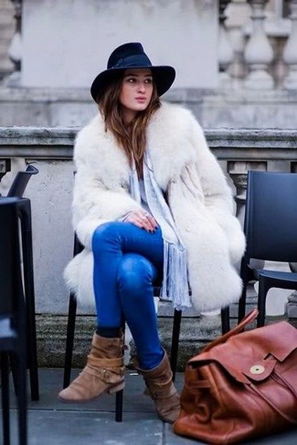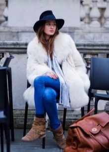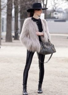 - With a fur coat. The hat which color will coincide with color of fur will ideally suit a fur coat. It can also be a couple of shades darker or lighter. Fur sleeveless jackets that are preferred by modern avtoledi will also look good.