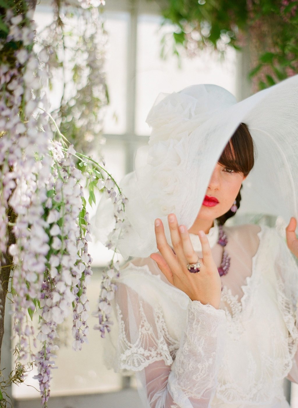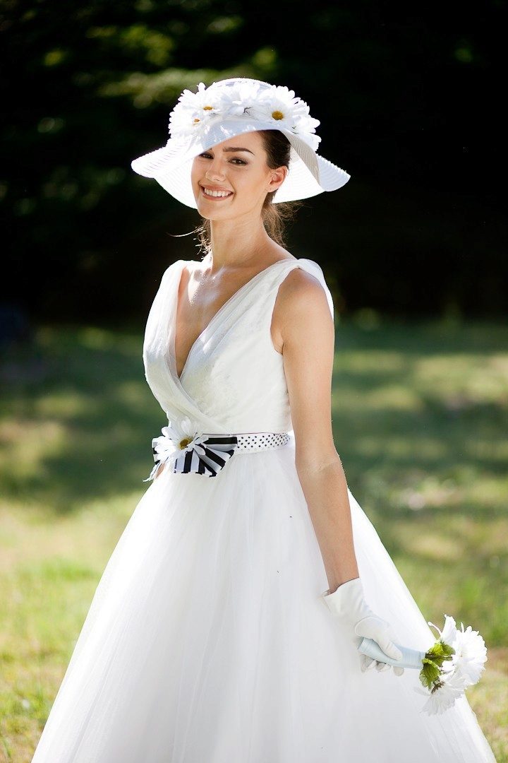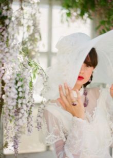 Wedding hats occasionally go into fashion, then the bride's interest in them disappears. In any case, a wide-brimmed wedding hat is a very interesting accessory that will suit bold brides.