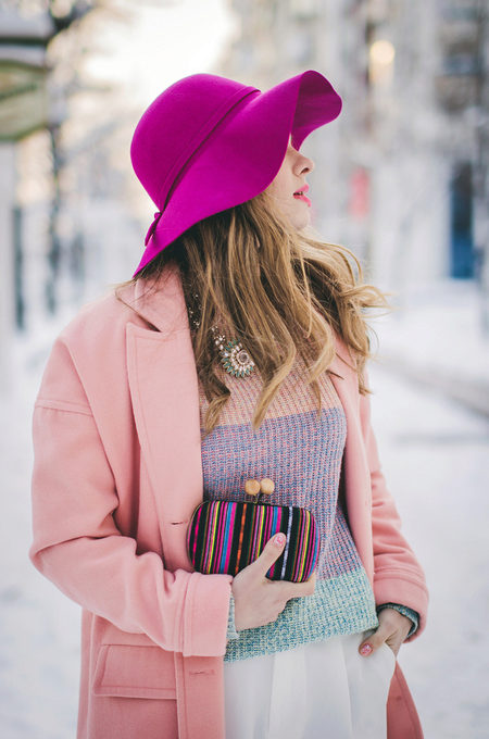 In spring, girls prefer pale pastel and ash-pink colors, while in summer they prefer light hats. It can be models of white, beige, cream, light green and light blue.