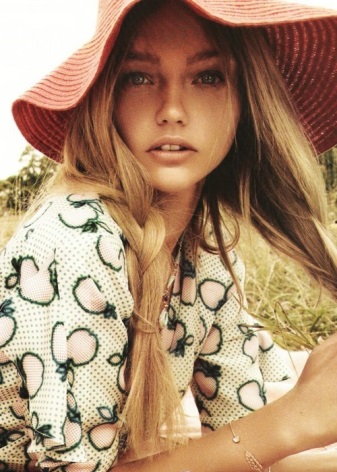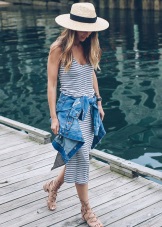 The image of a dreamy person in love will be supplemented with wooden ornaments, various silk scarves, ribbons that can be tied around a straw hat crown.Here the main thing is not to overdo it and not look too motley. It is important to remember that where there is a straw hat with large brim, there is no place for shoes with heels.