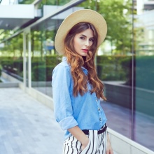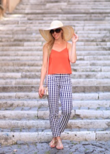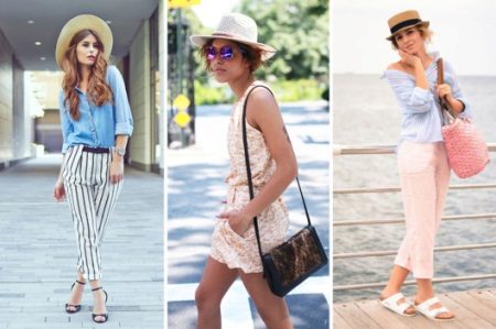 Beach style speaks for itself. The straw hat will be harmonious with short shorts, light T-shirts, a large textile summer bag.