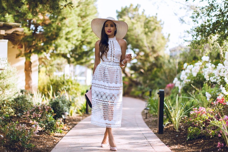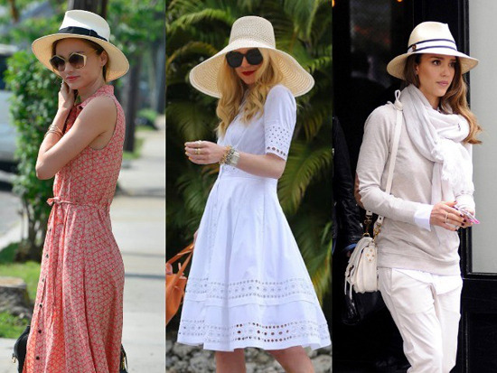 For an evening dress, a win-win is a white hat with light, romantic dresses in Provence style.