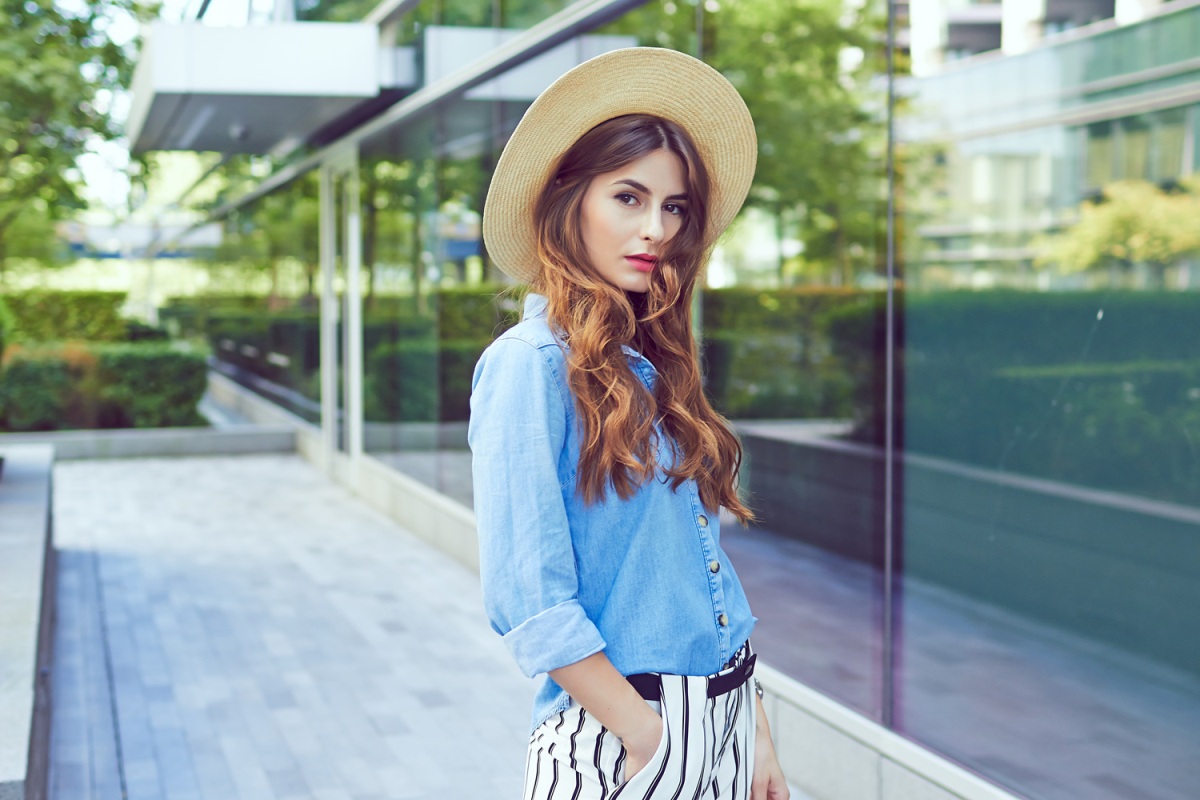 In the summer, a straw hat can be a great addition to an urban style look. Easy sundress of any length, sandals or ballet flats.
