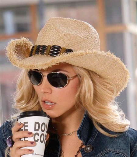 In 1860, a cowboy hat was created. She conceived as a male version of straw, but very soon women also began to wear it. If the sophisticated straw hat used to envelop the beauties with a light veil of romanticism, the cowboy plays played a significant role in the development of feminism. A lady in a cowboy hat is a cheeky, courageous, independent traveler who is not afraid of difficulties.