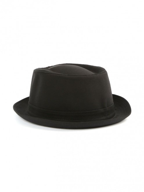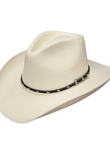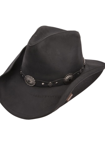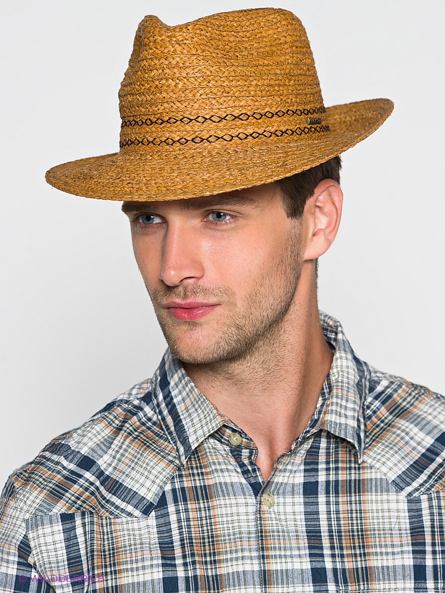 This hat is known throughout the world and is a symbol of the United States, personifying American flavor. Outwardly, it is a style with a high rounded crown, entwined with a thin cord. Wide brim of a hat are bent up on each side. On the crown, the model has a deep dent.