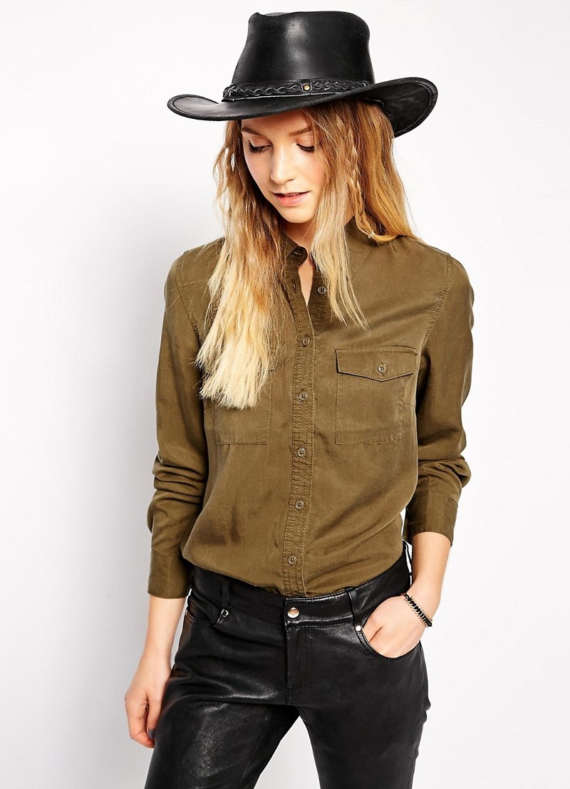 Complementing your image with a hat of this style, you should not completely copy the style of cowboys from westerns. It will be overkill. It is much more interesting to make your own unique style by putting on an accessory with casual wardrobe clothes.