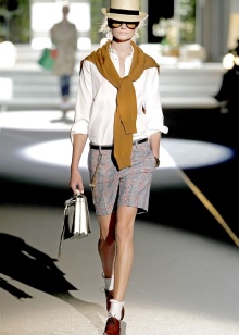 Want to be bold and stylish? Then you should experiment with trendy denim shorts with a classic or high waistline. Upstairs you can wear a free t-shirt, top or t-shirt. The look, complemented by a fashionable trilby to match the clothes and sunglasses, will look very impressive.