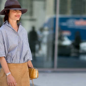 A stylish outfit with a fashionable hat can be made more vivid and attractive with the help of sunglasses, miniature handbags and clutches with a shoulder strap or large bags in classic colors.