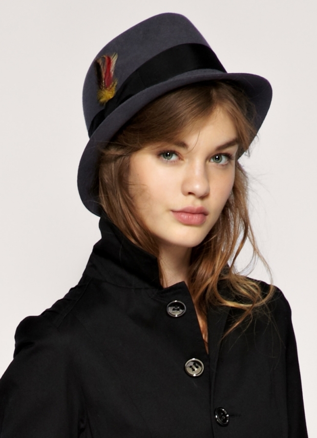 Trendy women's trilby hat will help emphasize the elegance and sophistication of the image. This model is one of the varieties of fashionable hats fedora. A spectacular accessory came to the female wardrobe from the male and firmly entrenched in it.