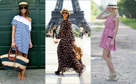 Elegant hat looks great with a variety of models of dresses. The dress can be straight, fitted or free. Romantic style can be created with the help of a feminine fitting dress of medium length or a light dress made of flowing fabrics. The image will be more complete if you add a fashionable jacket or jacket to it.