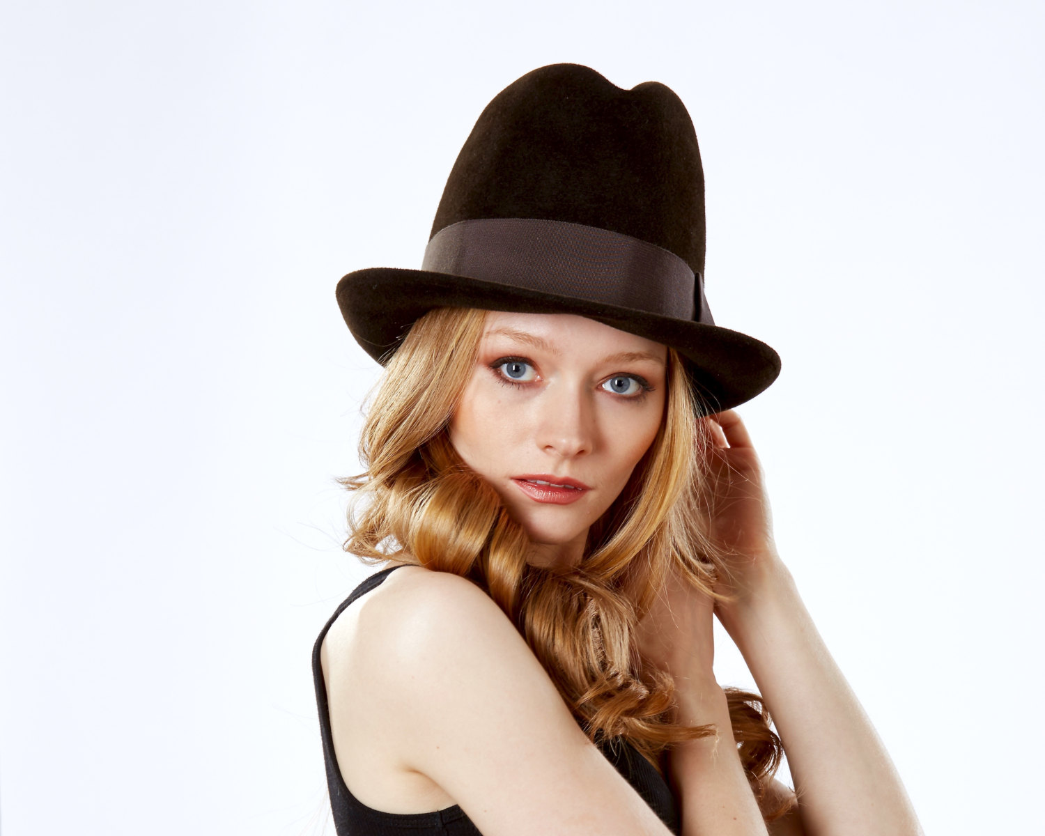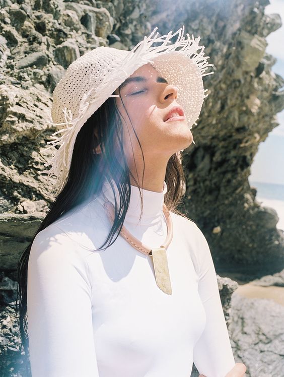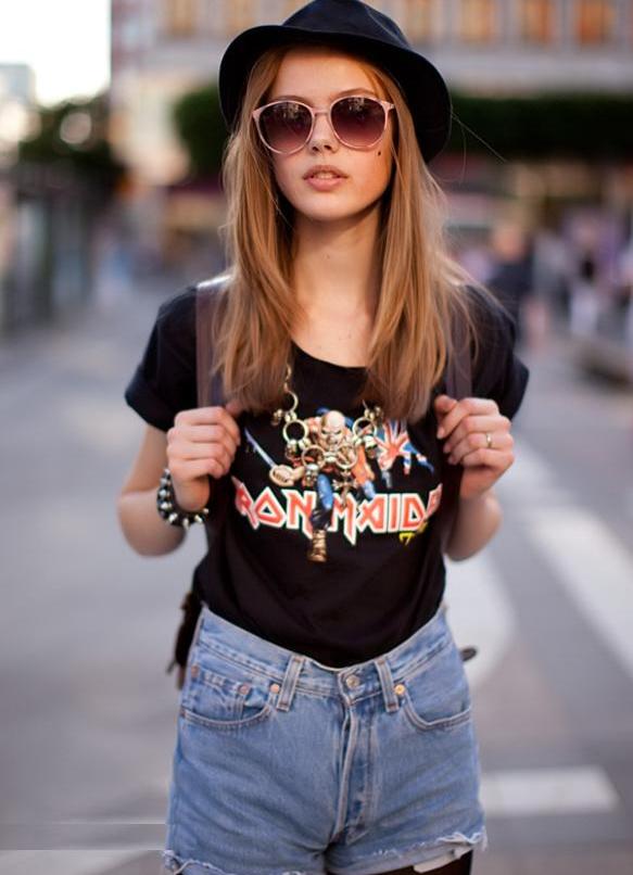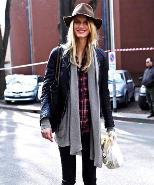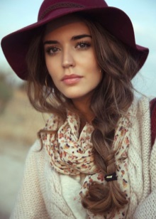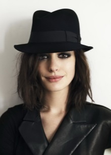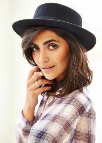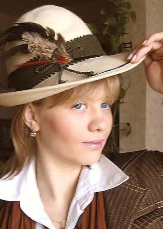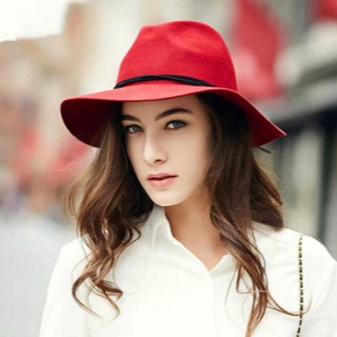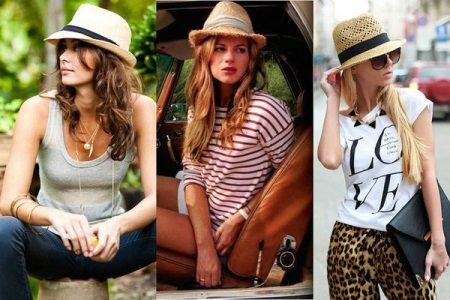 Headgear of this type should be chosen for slim girls, as a hat can emphasize your fullness. Textile hats are best combined with light blouses, short dresses. A wide brimmed felt hat will look perfect with a leather jacket. You can dilute the image with heels, a loose dress or shorts.