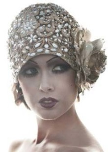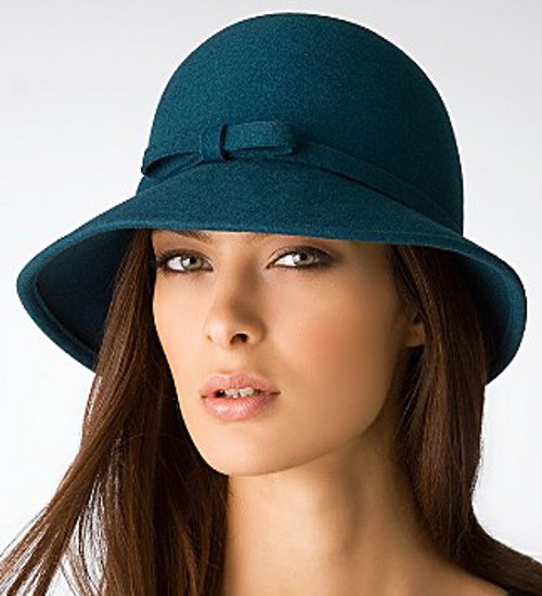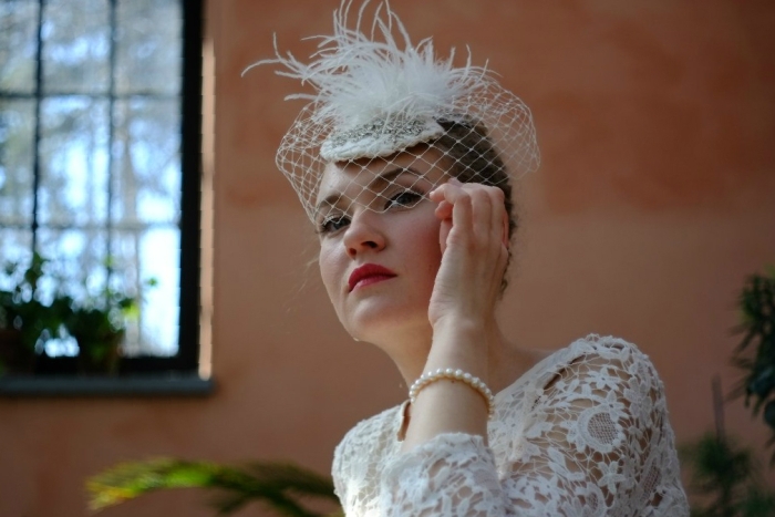 Cloche fits the head tightly. She has a round crown and narrow fields. Designers decorated it with various ornaments: brooch, bandage, beads, veil and more. Initially, a cloche was made of felt, but over time the bonnets began to knit, sew from cloth or weave from straw.