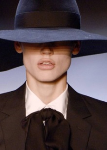 The minimalism of the 19th century was reflected in the fashion of hats - an elegant Fedora, elegant tribals or a modest pork-share today turned out to be the main subjects of men's and women's wardrobe. One of the main trends of the time was Fedor. It is sewn of felt, so that the cap fields can be lowered and raised. Tule has three dents. Decorate the hat with a ribbon.