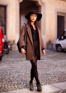 With such a hat is worth considering in retro style. You can combine it with a skirt or pantsuit, a fitted coat, and cloaks. It will look great slouch with a dress-case or a narrowed skirt with an air blouse. Add the image should be classic boats, ankle boots or boots.