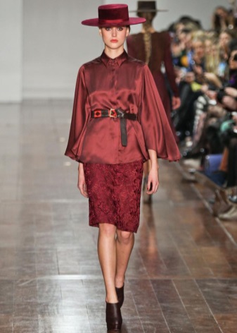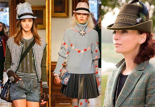 Pork-style hats will look perfect with tops, T-shirts, light blouses. They can be worn in combination with dresses made of natural fabrics. Fashion houses show this style with classic shirts or trouser suits.