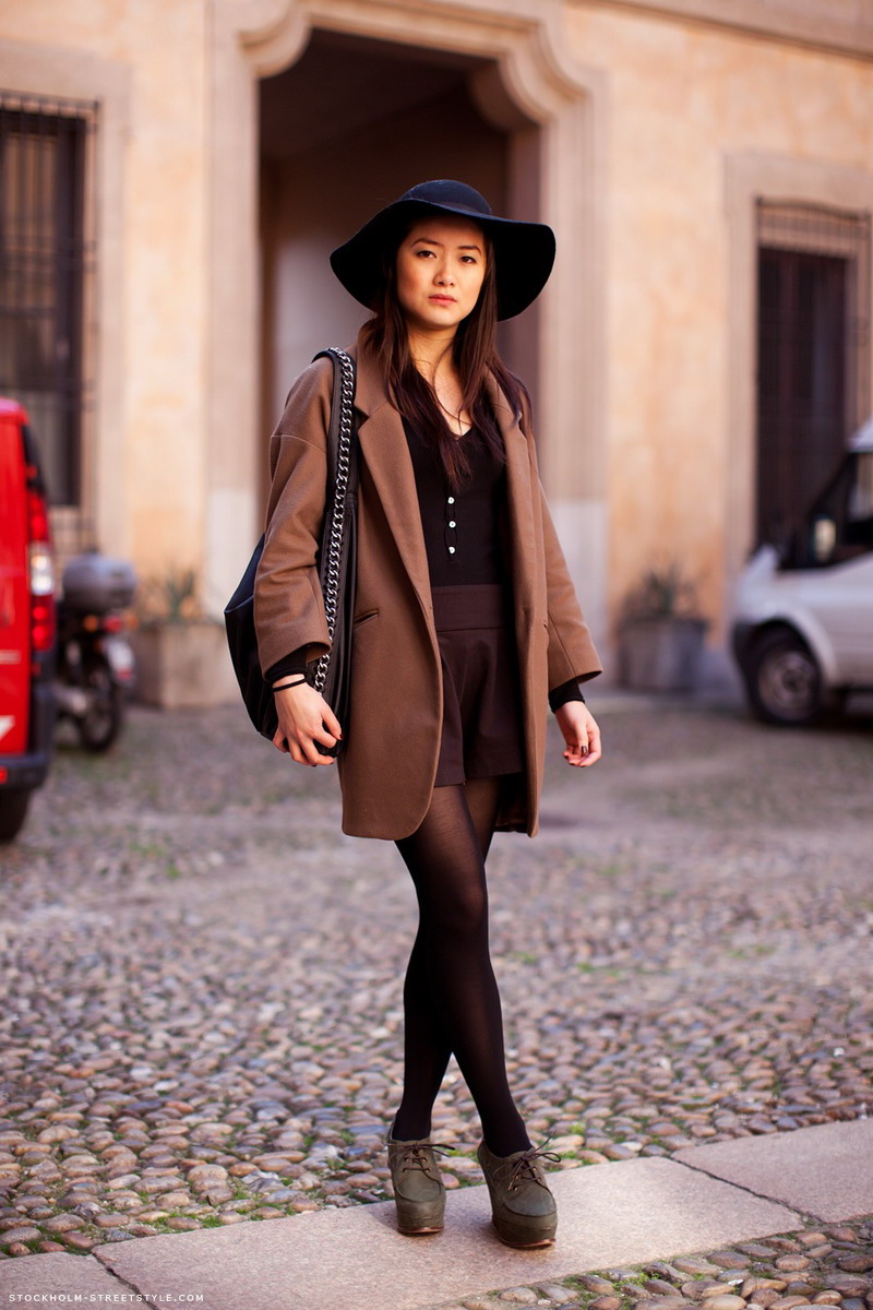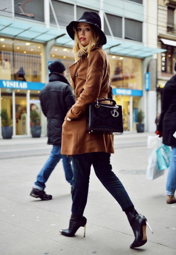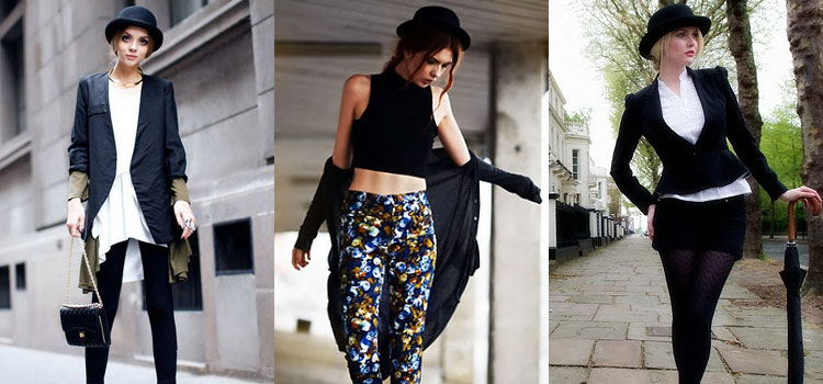 Combine the bowler with a coat and jeans for a daytime look and a pencil skirt for an evening dress. Style of a business lady in a combination of classic trousers with a blouse will look good.