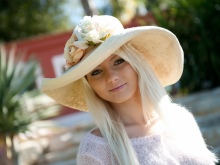 - Girls with narrow chins and a wide forehead need options that reduce the volume of the upper part of the head. They are perfectly suited for caps with a low crown and wide brim.
