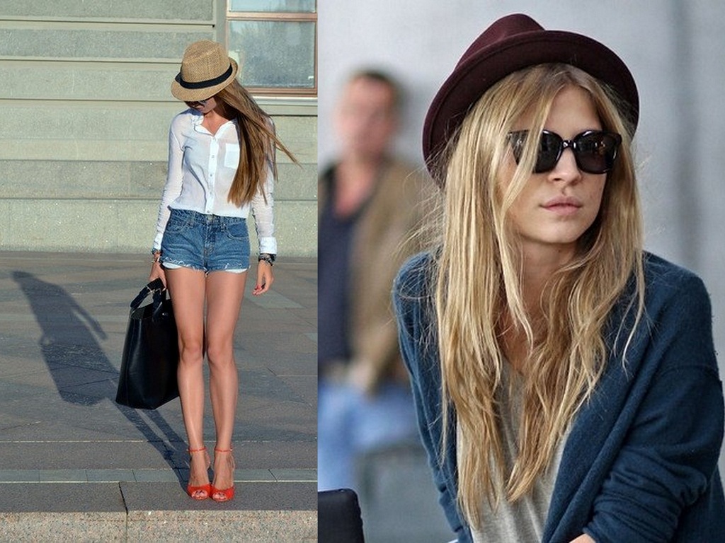 You can wear a model with a trouser suit or a set of a jacket and shorts. In this case, the hat can be bent up or down. To give a special charm you can wear borsalino diagonally.