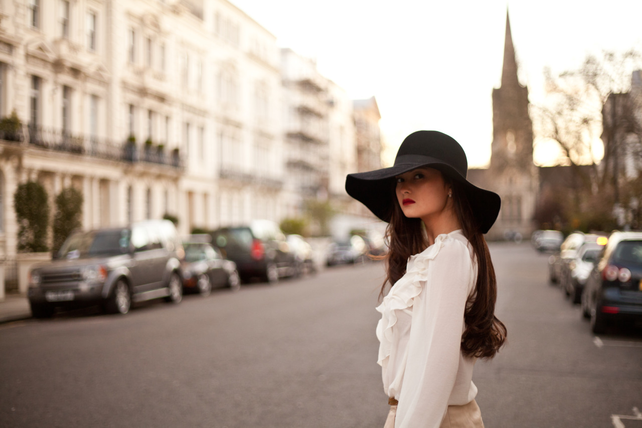 This model is the most popular. It is a fashionable attribute of a stylish bow and protects the head from the sun. The model is a strict style with an average height of the crown and small fields. They can be very narrow or moderately wide, straight, curved up or down. Sometimes the fields on the sides bend up, and in front - down.