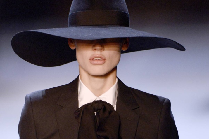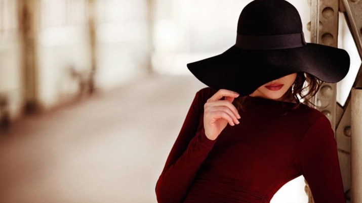 In trend models with wide wavy fields. With such styles, the image becomes mysterious and personifies the incredible refinement of taste. The headdress is good in that it can be worn at any time of the year, selecting for each season its own material. In this case, the accessory reliably protects from the wind, protects the head from sudden rain and allows the woman to be the center of attention.