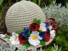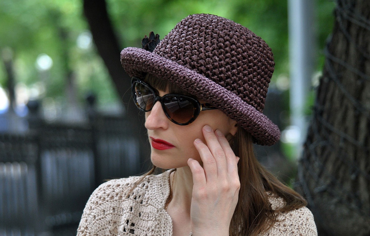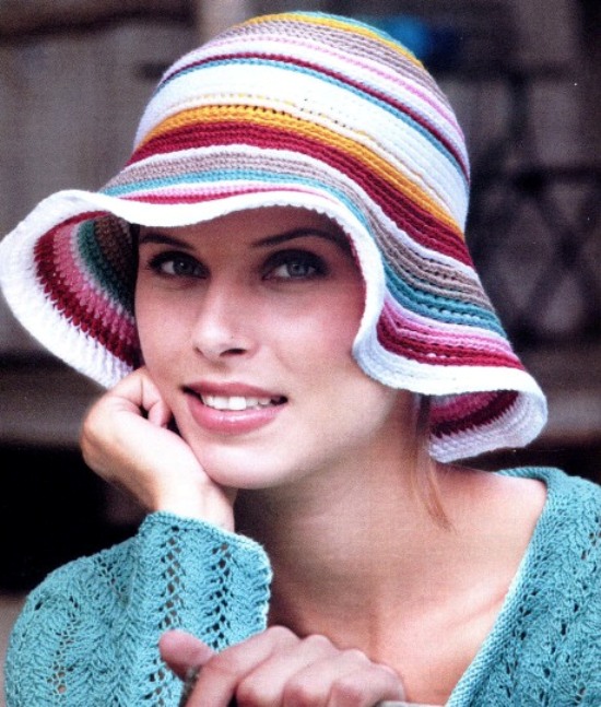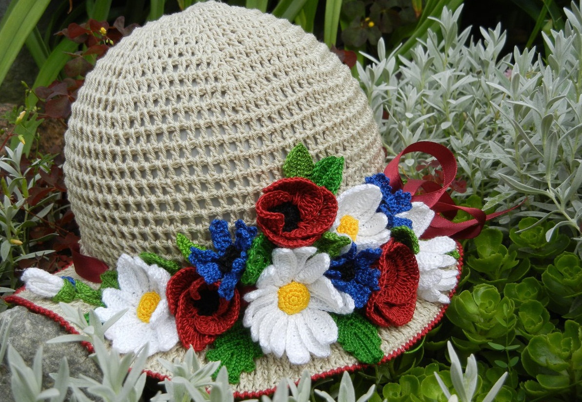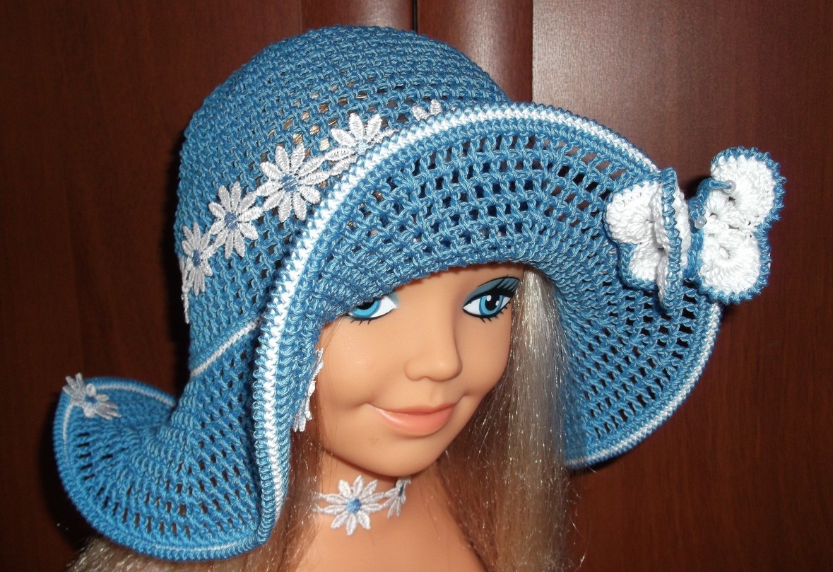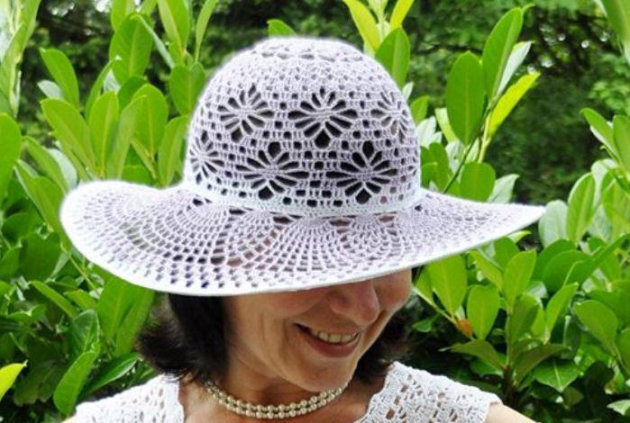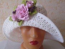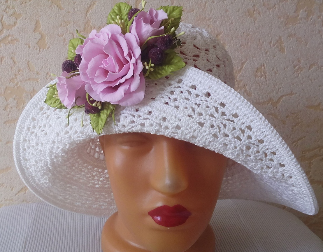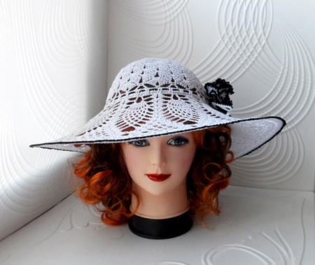 - Broad-brim. May be connected tracery or tightly. Usually decorated with crocheted flowers, braid or feathers.