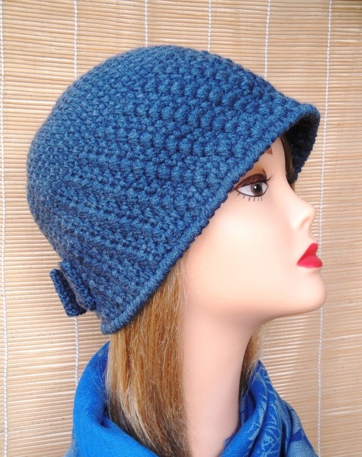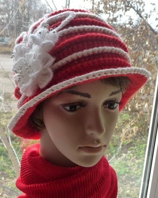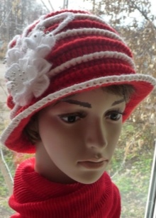 - Cloche Hat-bell, which covers the forehead, with a low rounded crown and narrow fields. The crown and field can be separated by tape. Such hats are usually decorated with various decorative elements, most often with crocheted flowers.