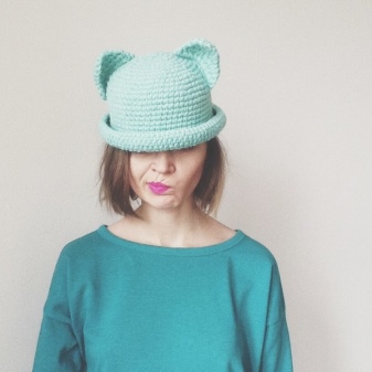 - With ears. Craftswomen knit hats with ears, which are called "Cat", "Fox", "Panda". The names in this case speak for themselves.