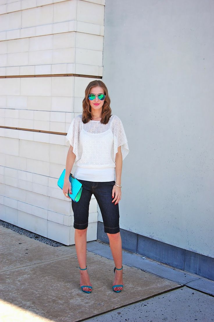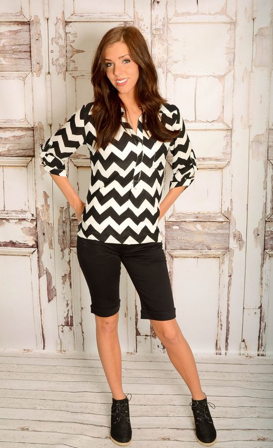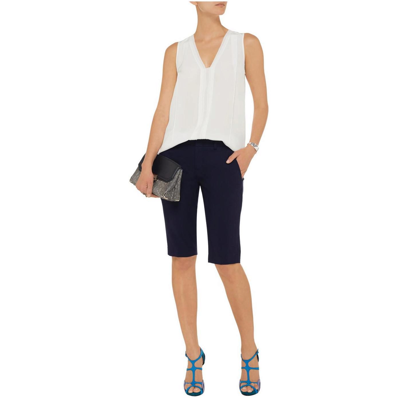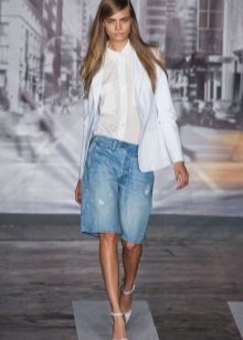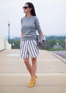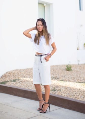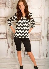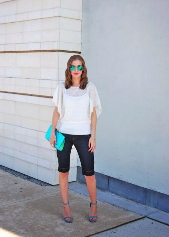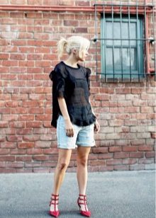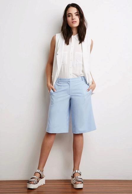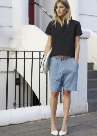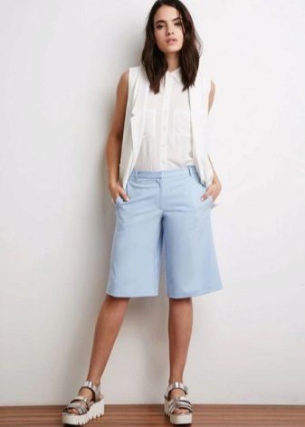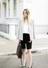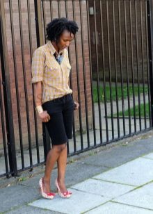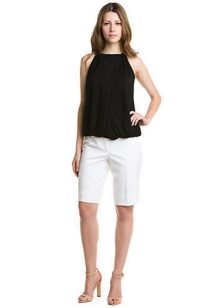 If you buy bermudas for the office, then pay attention to natural fabrics. Thin blouses and strict jackets are perfectly combined with such classic shorts. On the feet should be office shoes - shoes with heels.