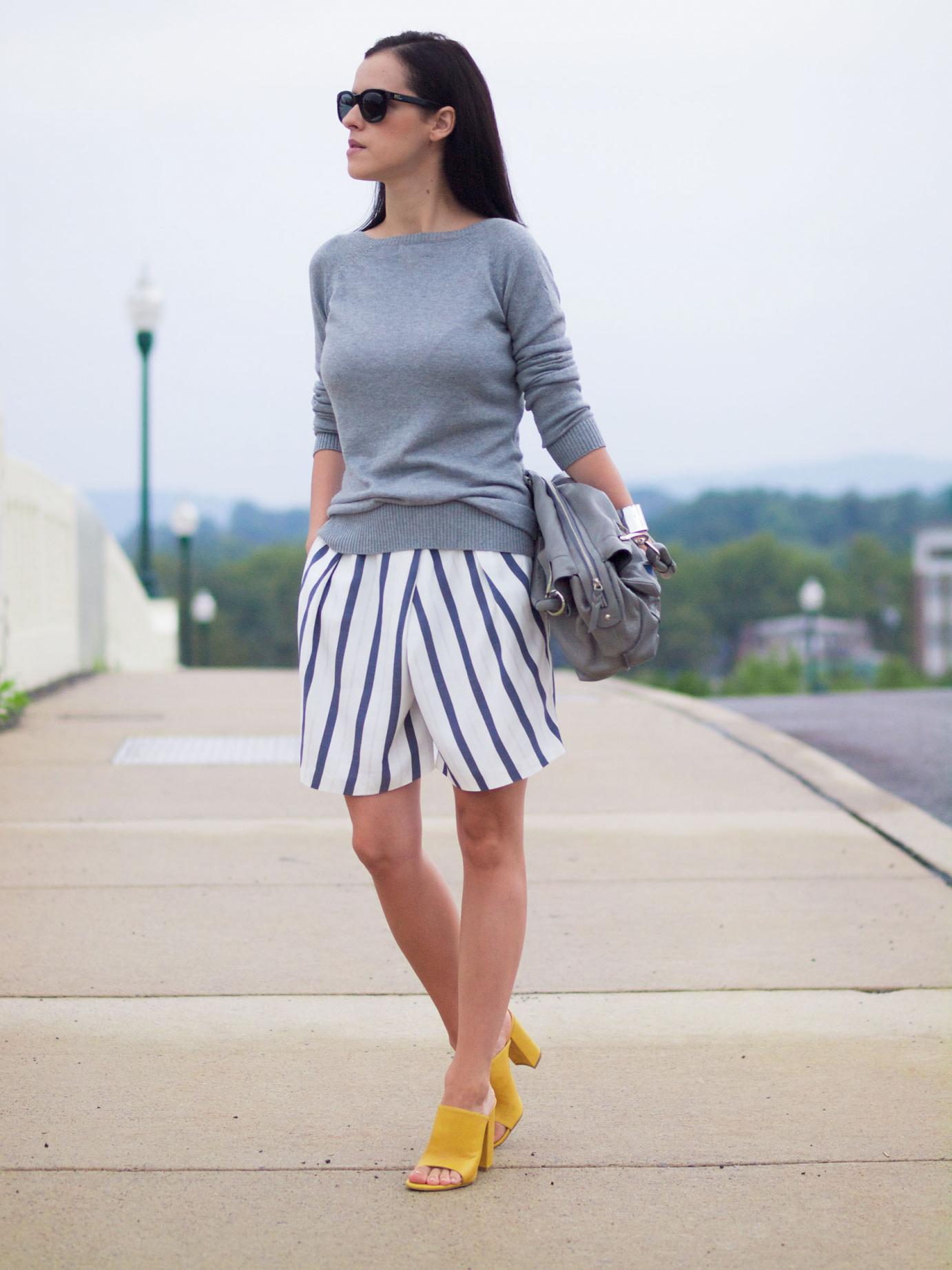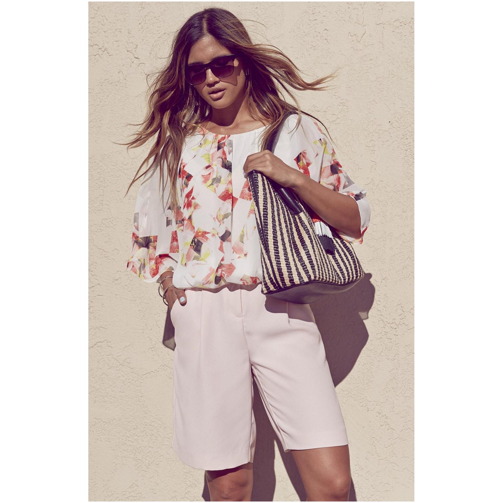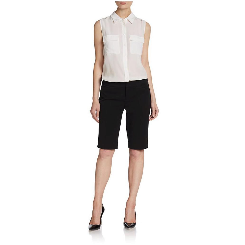 If you buy bermudas for the office, then pay attention to natural fabrics. Thin blouses and strict jackets are perfectly combined with such classic shorts. On the feet should be office shoes - shoes with heels.
