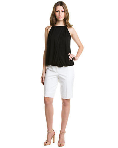 Bermuda - one of the most popular variations of shorts among women. Their length reaches the knee or ends slightly higher. They are distinguished by a strict classical straight or flared cut. Costume models have pronounced arrows, deep pockets and a belt. They are extremely comfortable and pleasant to wear clothes.