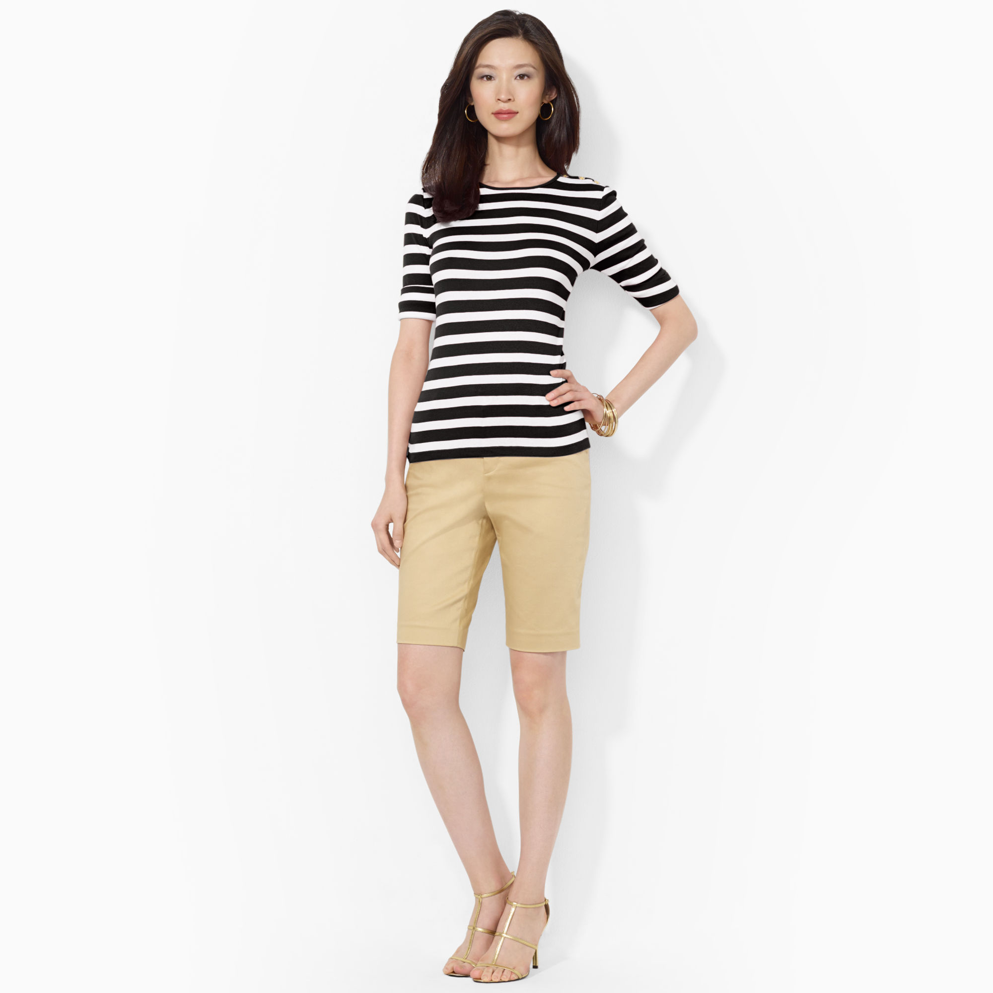 When buying classic bermudas up to the knee, remember that their mistress still needs to have certain proportions: they definitely will not suit low women with forms.