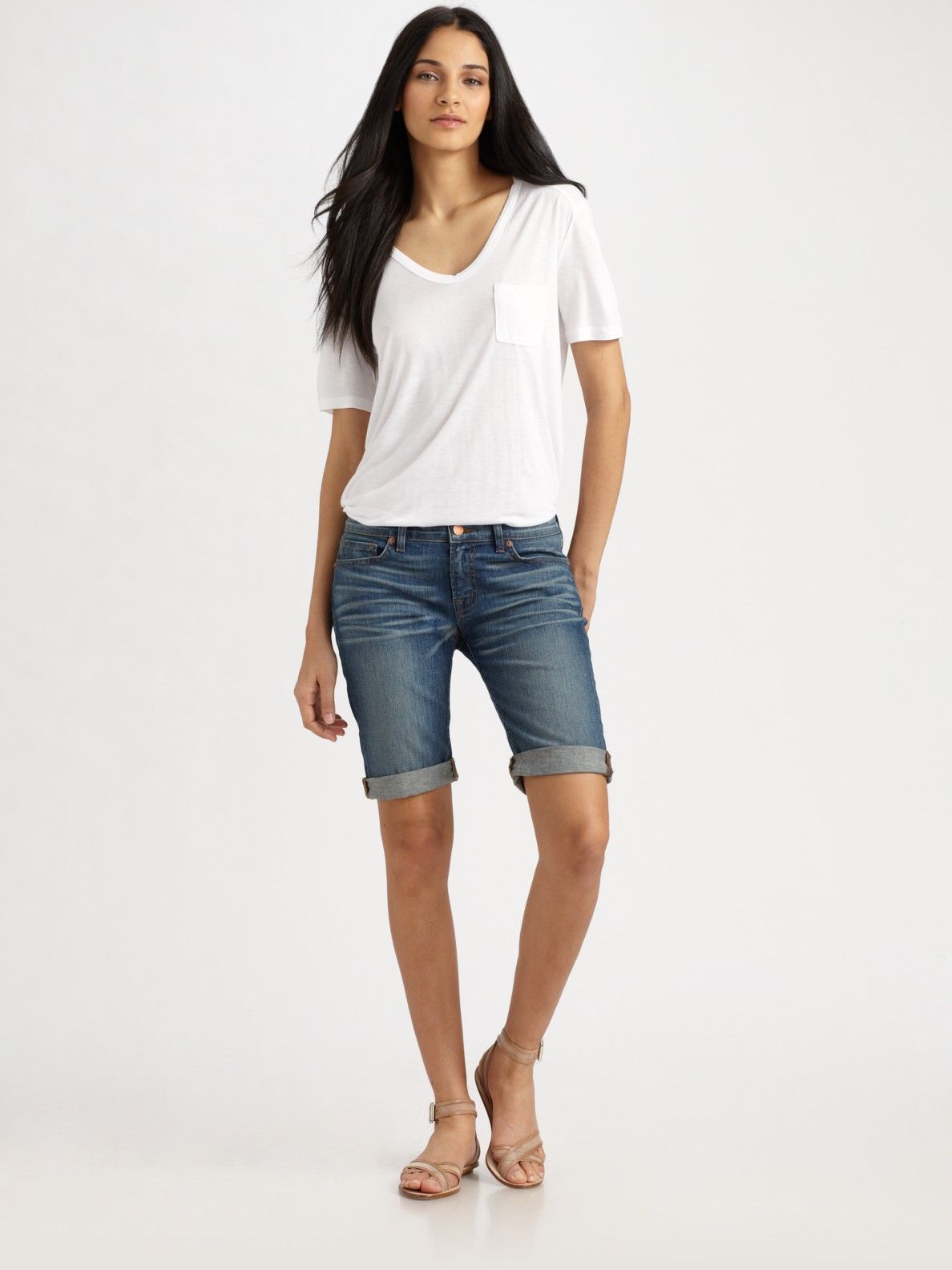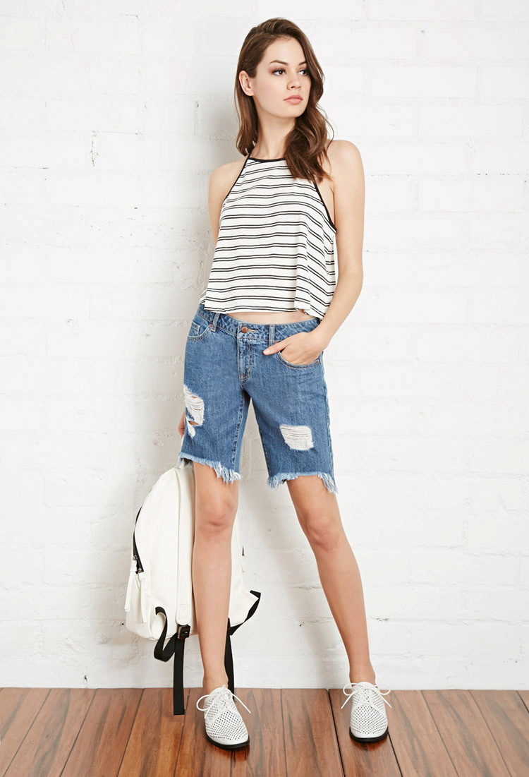 This cut differs from ordinary short shorts in its cut, which imitates the upper part of classic trousers, and in length. Bermuda can have a wide lapel at the bottom, loops under the belt. These clothes are made in a variety of styles: beach, casual, office, sports, etc.