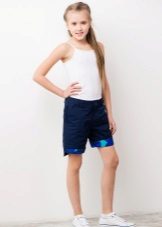 Sports shorts for girls who lead an active lifestyle should be sewn from durable fabric, at the same time well passing air. As a rule, it is an elastic jersey, which fits the body, does not deform, is perfectly erased. As an option, you can still choose cotton and velor. As for synthetics, one should be more careful with children's clothes: artificial materials often cause allergies in children.