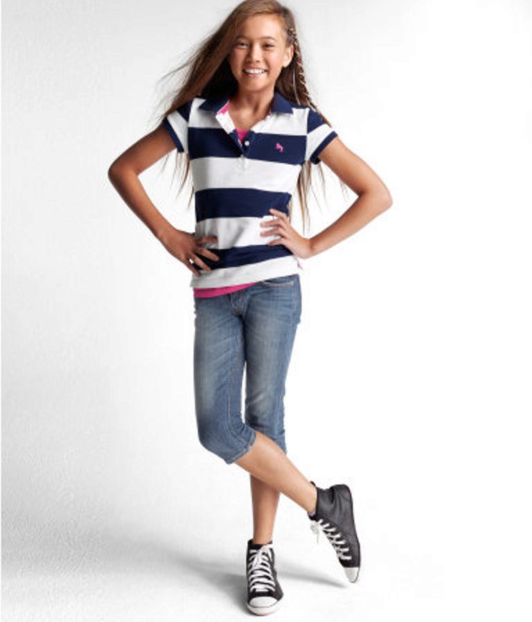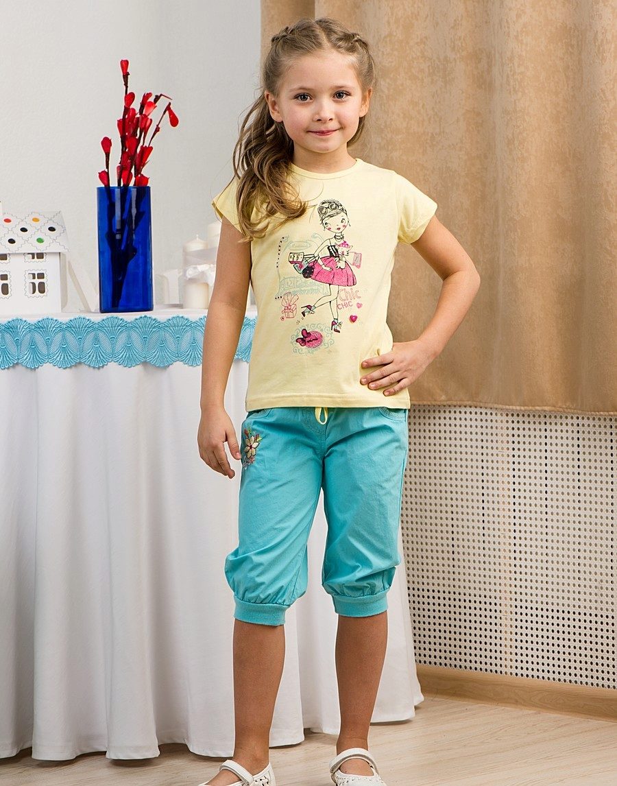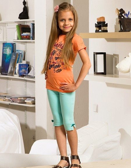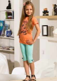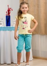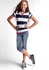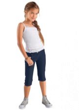 School girls love to wear skinny denim capris (or made of thick cotton) length to the middle of the calf. They will harmoniously look with ballet shoes or sandals.
