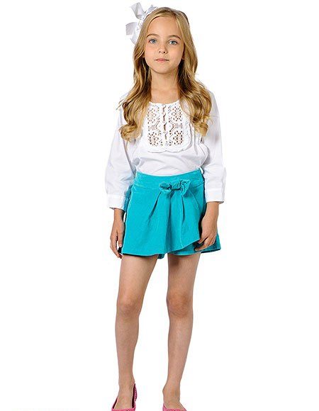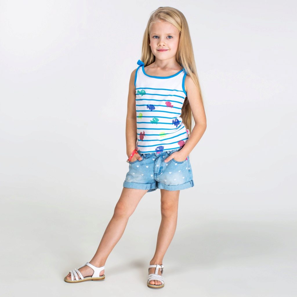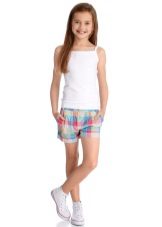 When choosing shorts for your daughter, first of all, consider her age and features of the figure. Almost all the options are slim and high. Owners of the boyish figure are recommended to emphasize the waist line, as well as to choose shorts-lanterns, which extend slightly downwards.