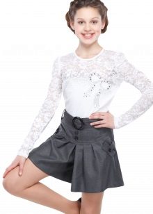 Versatile clothing - shorts, skirt, combining femininity and practicality. This thing (depending on the fabric) is suitable for any season: summer options are made of chiffon or thin knitwear, models made of wool and velveteen are appropriate in the cold season. Skirts, shorts are presented in a variety of styles: pleated, pleated, asymmetrical cut with a smell. Such a thing, just not too short, you can wear to school. Skirt-shorts can be casual or festive (again, depending on the fabric and decor).