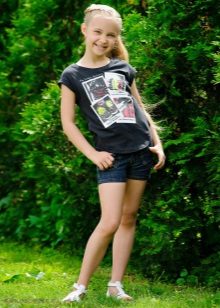 Short mini-shorts mid-thigh - the best option for children's games in the fresh air. Such things, usually made of cotton, are well worn, have no problems with washing and look elegant at the same time. Always relevant denim models, as a rule, with pockets. Especially spectacular look shorts with a thin belt and decorative inserts.