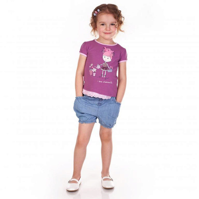 To pick up beautiful and comfortable shorts for a girl of preschool age is not difficult. The girl will be comfortable in them in kindergarten or on a summer walk. As a rule, such models are made of natural fabrics (variants from jeans are especially popular), decorated with embroidery, appliqué, and pockets. The edge of the products is sometimes folded, and a thin belt of identical material is inserted at the waist.