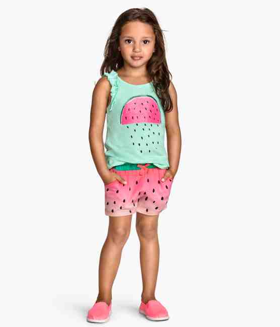 Note that children's shorts often have pockets, because children like to wear different small things in them. A girl of school age can hide there money or a mobile phone. For babies, big pockets are inappropriate.