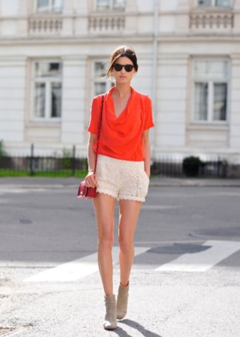 In addition, any neat shoes with an average heel or elegant ballet flats with a rounded and slightly pointed tip fit the shorts. It is necessary to make sure that the shoes fit the color range of the whole image, otherwise it will turn out tasteless and inappropriate.