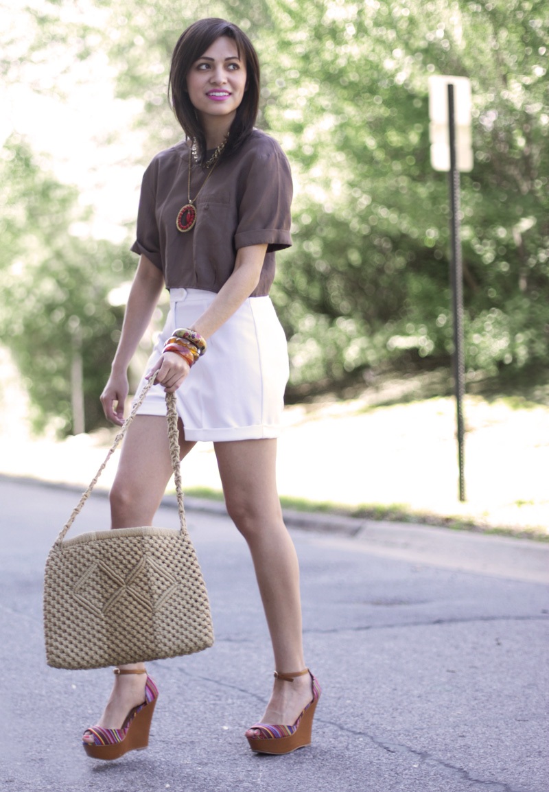 Perhaps a combination of shorts with high-heeled shoes with a hidden platform, only if the shorts are knee-length or slightly lower. In any other cases, the image will turn out to be vulgar and depraved, despite the presence of an element of the classics.