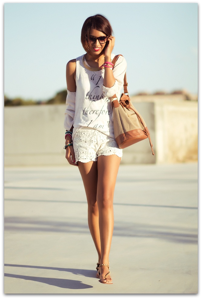 If we talk about accessories, it is important to remember that lace shorts are an independent part of the image and can well do without additions. But well-chosen accessories can make the image even brighter.