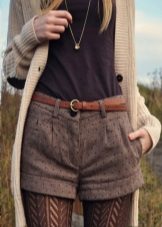 Corduroy and tweed shorts, having a denser and warmer fabric structure, are the most suitable for cool weather. And for the summer are good cotton, linen, chiffon and thin jeans.