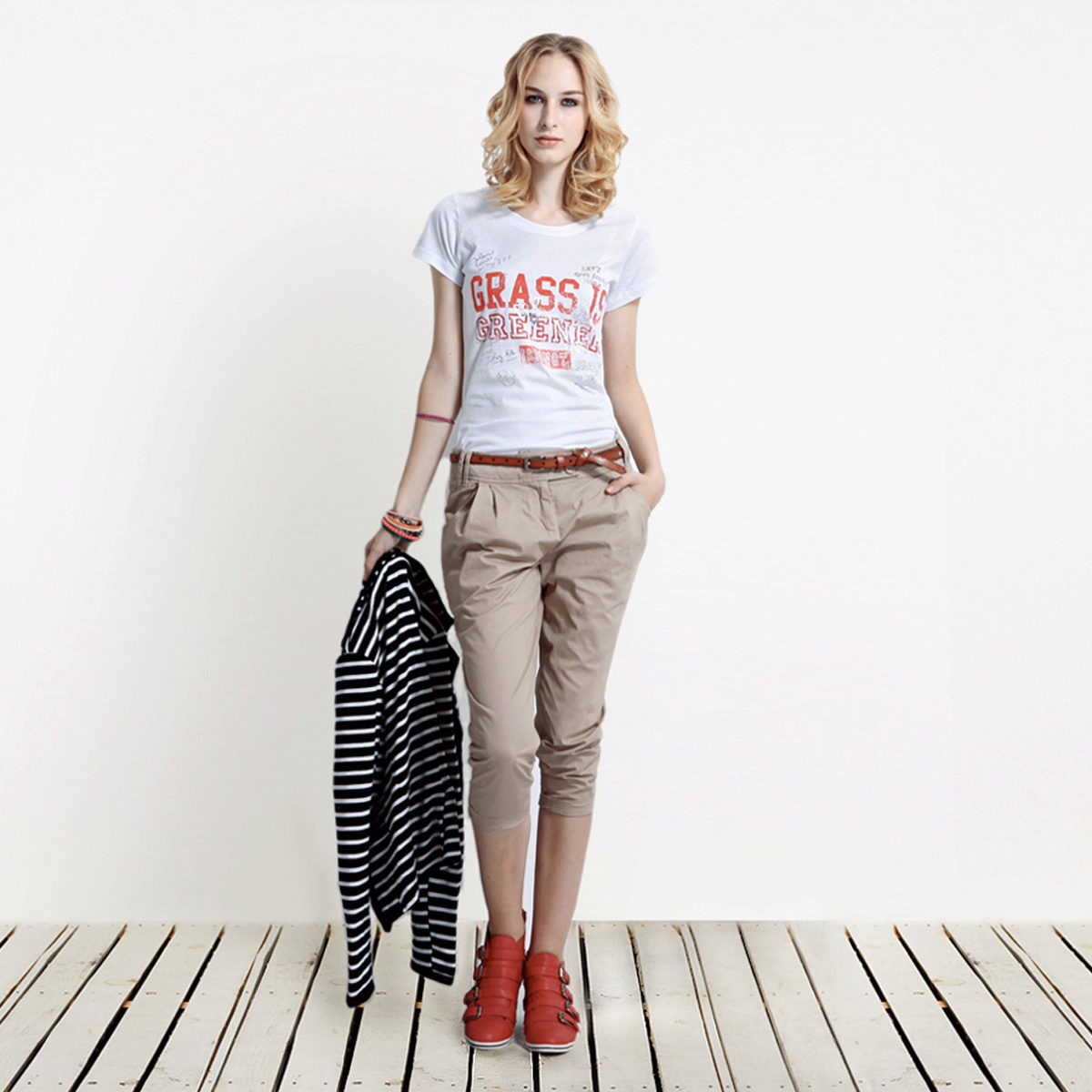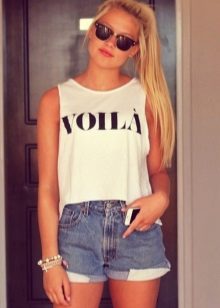 A more sporty and casual look can be created with a T-shirt, top or t-shirt. Such combinations are especially good for sports, summer walks over long distances, tourist trips or beach holidays.