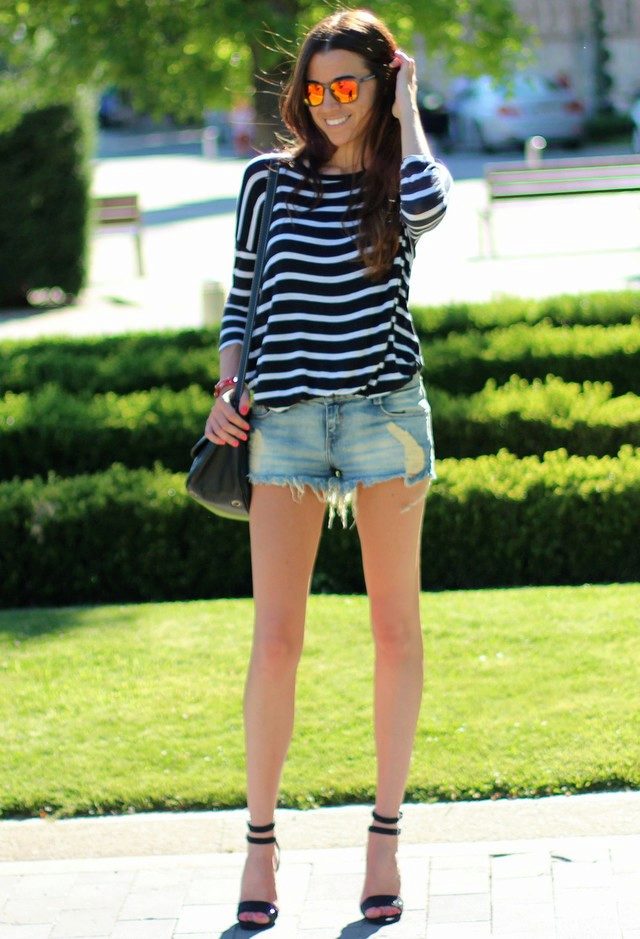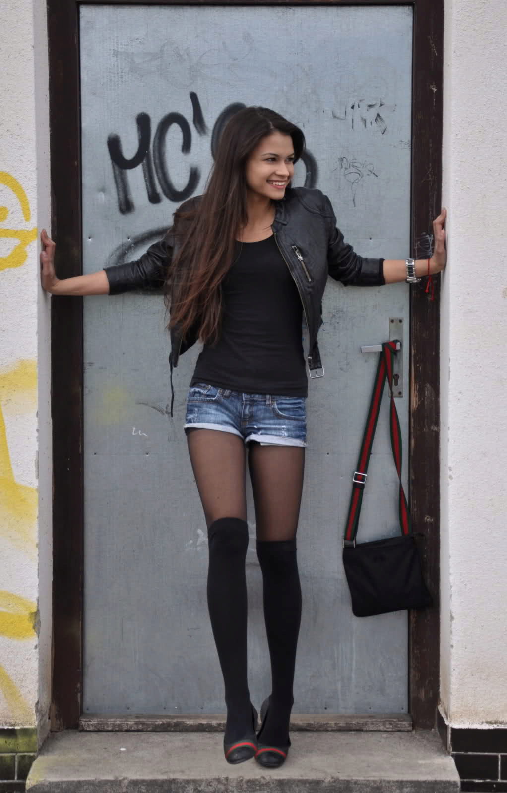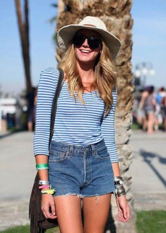 Some, especially creative and courageous girls, combine very short shorts with colored leggings, creating, thus, an outfit in the style of the nineties.