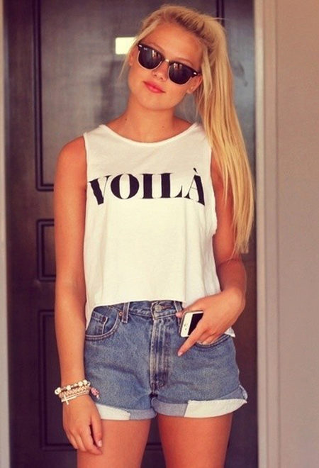 The brightest example of such a frank length is micro shorts, which are most often made of knitted or denim fabric and resemble shorts rather than shorts. This model is suitable for thin girls who do not have flaws and are afraid to flaunt a slim body.