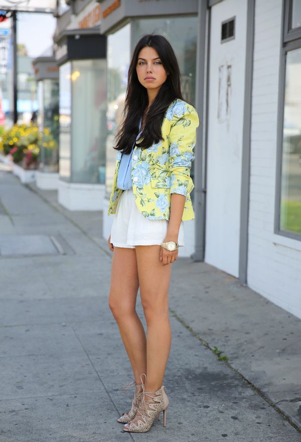 However, white shorts are able to emphasize the beauty of only slender female legs. The short length in combination with light color makes them the most suitable clothing for slender dark brown girls. In addition, in combination with the right shoes, this product can visually lengthen the silhouette of its owner, making it even more seductive.