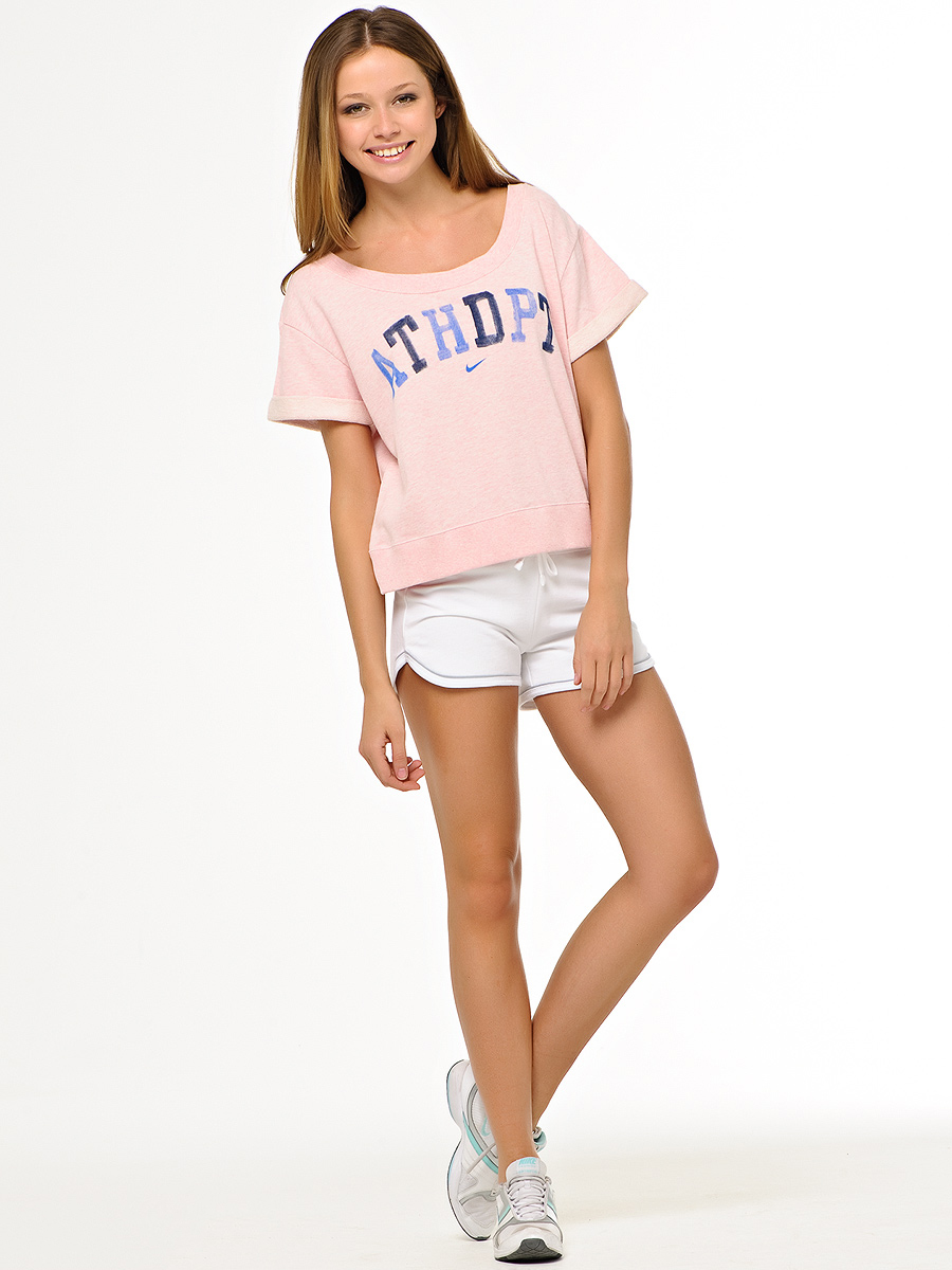 Going for a long walk, the girl, of course, wants to take care of her comfort. That is why on a hot summer day her choice will definitely fall on the white sports shorts of such famous manufacturers as, for example, Nike. Such short models are easy for a woman to complement with her favorite sneakers or sneakers, and to put on a t-shirt or a wrestling top of the current bright or classic neutral color on top.