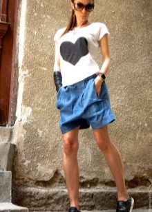 Shorts go well with T-shirts, blouses, T-shirts. For shorts with a high fit, a short topic would be ideal. Under the shirt is best to wear elongated models of shorts.