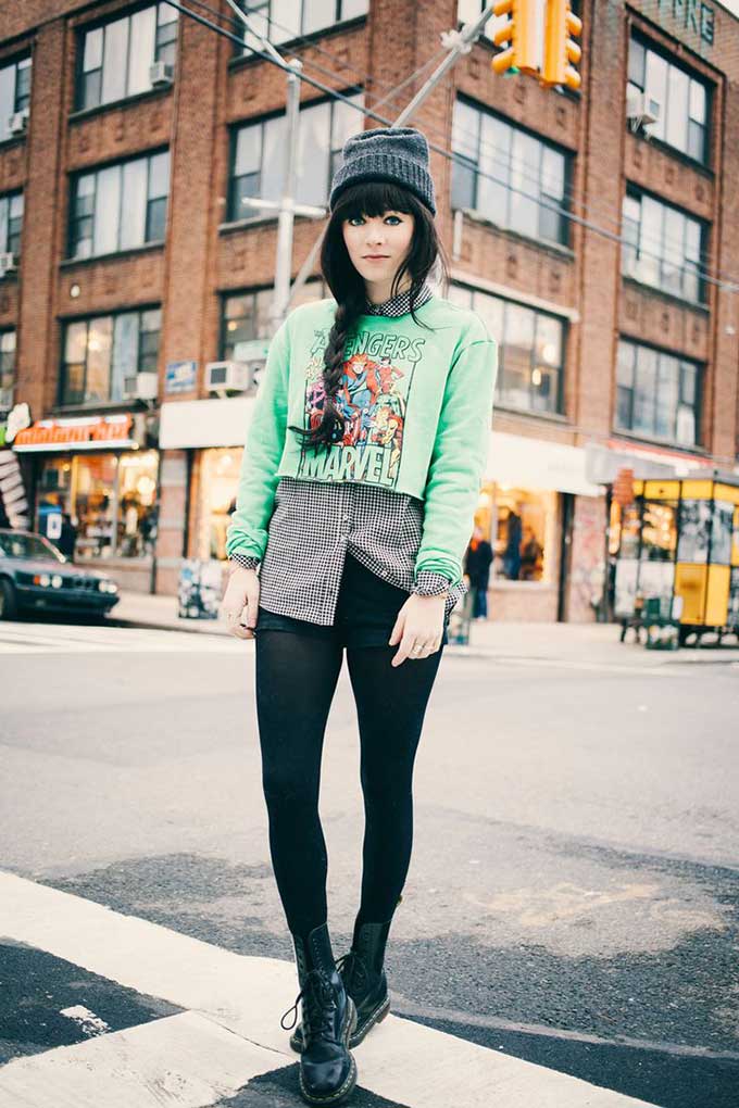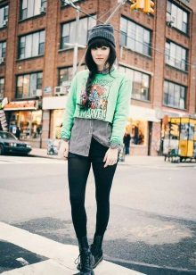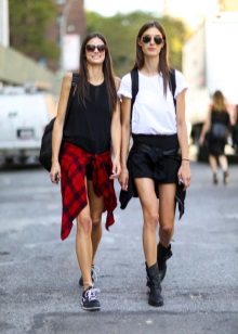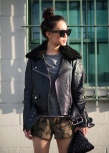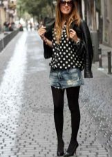 In cool weather, you can wear shorts with tight tights and with a jacket or leather jacket. Wear it over a T-shirt, shirt, thin sweater or sweatshirt.